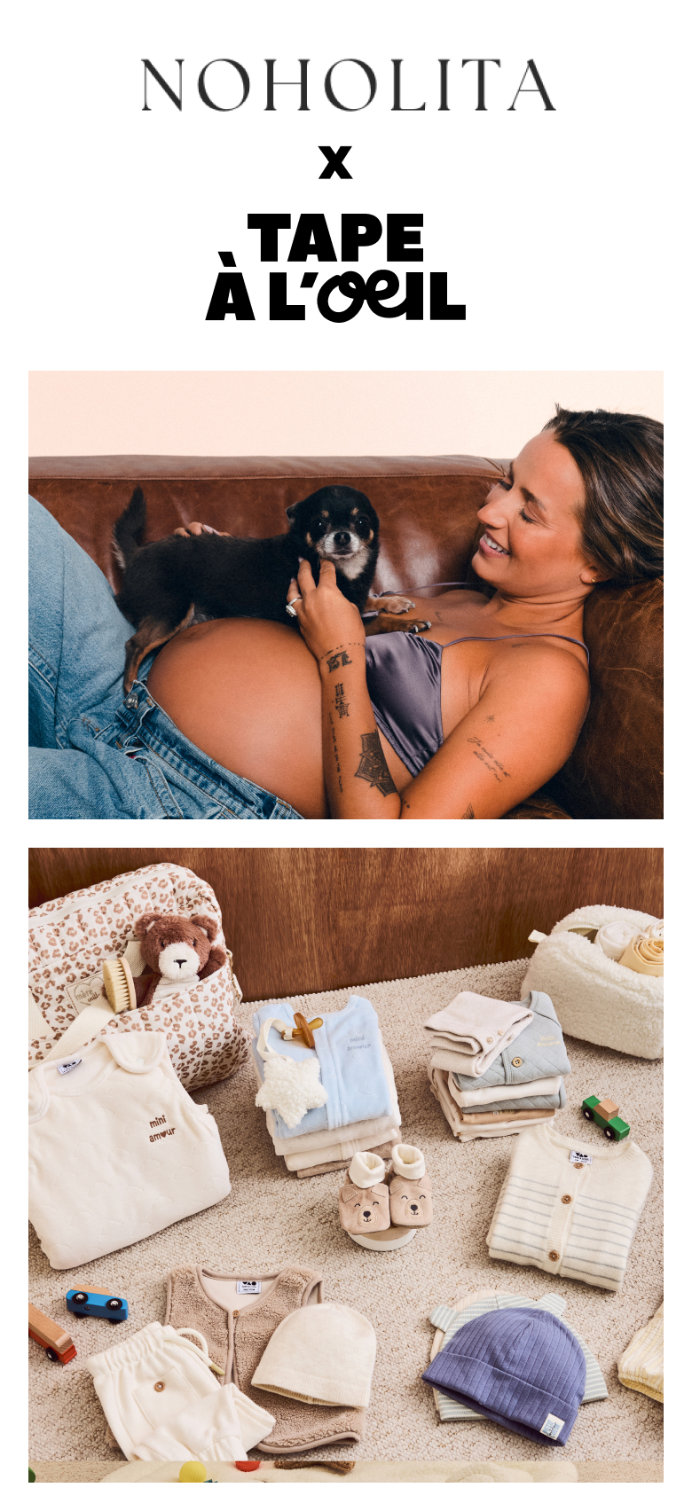 Camille Callen, alias Noholita, a trouvé chez Tape à l’Œil tous les essentiels pour préparer sa valise maternité en toute sérenité et qui lui ont permis de vivre pleinement les premiers instants avec son bébé.