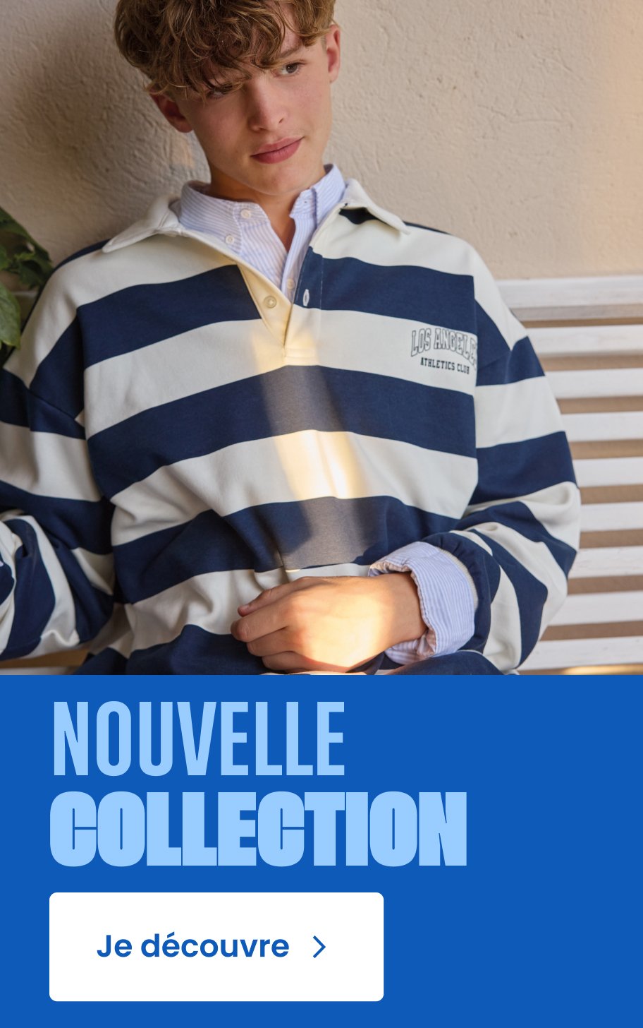 Polo garçon oversize rayé bleu marine