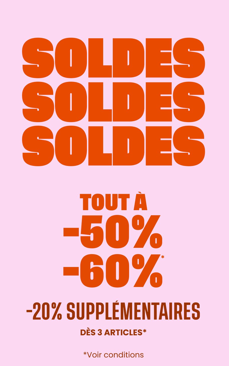 TOUT à -50%,-60% et -20% supp dès 3 articles